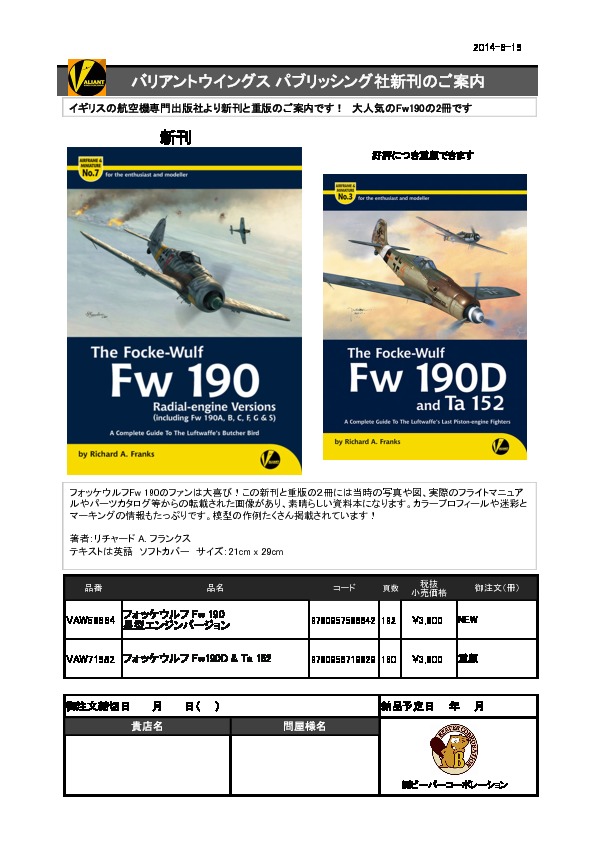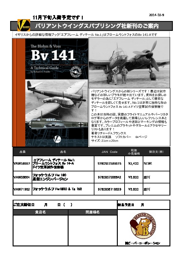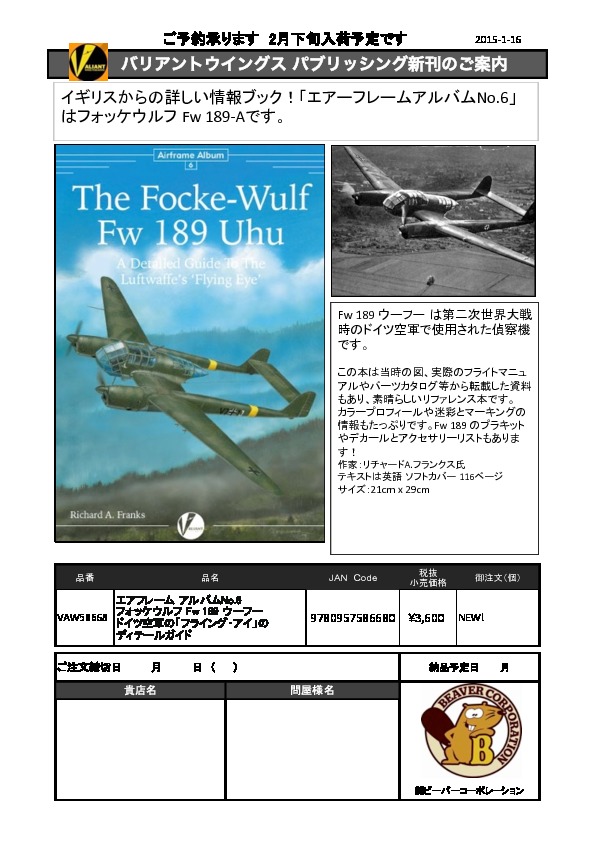 バリアントウイングス新刊ご案内Fw 189-A 2015/01/15