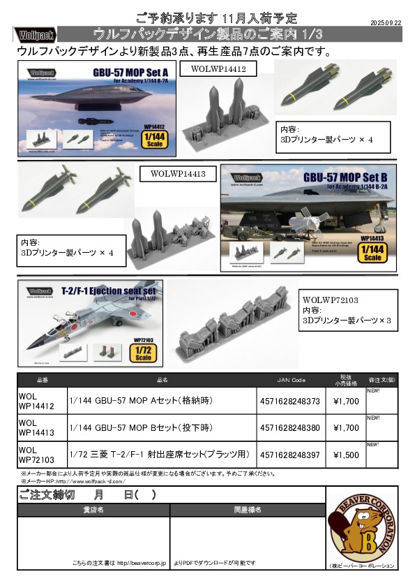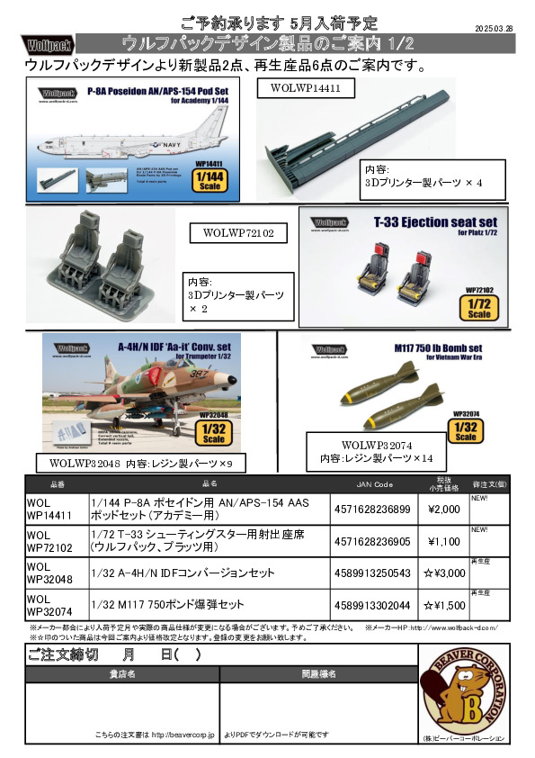 ウルフパックデザイン 新製品 & 再生産品パーツ 案内 2025.03.28